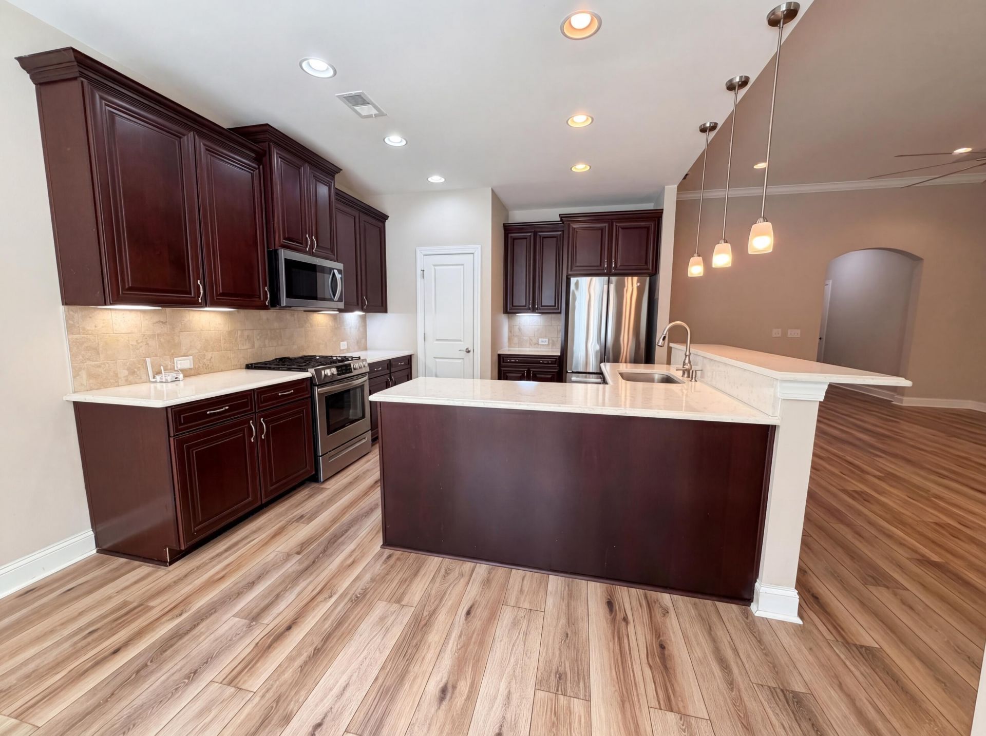 Welcome to 537 Nandina Dr, a single-family residence with a straightforward, functional layout. The kitchen is equipped with all stainless steel appliances and features an accent backsplash. The primary bathroom includes double sinks. A covered patio extends to a fully fenced backyard. This residence combines modern elements with practical outdoor living.. Included 100-Day Home Warranty with buyer activation